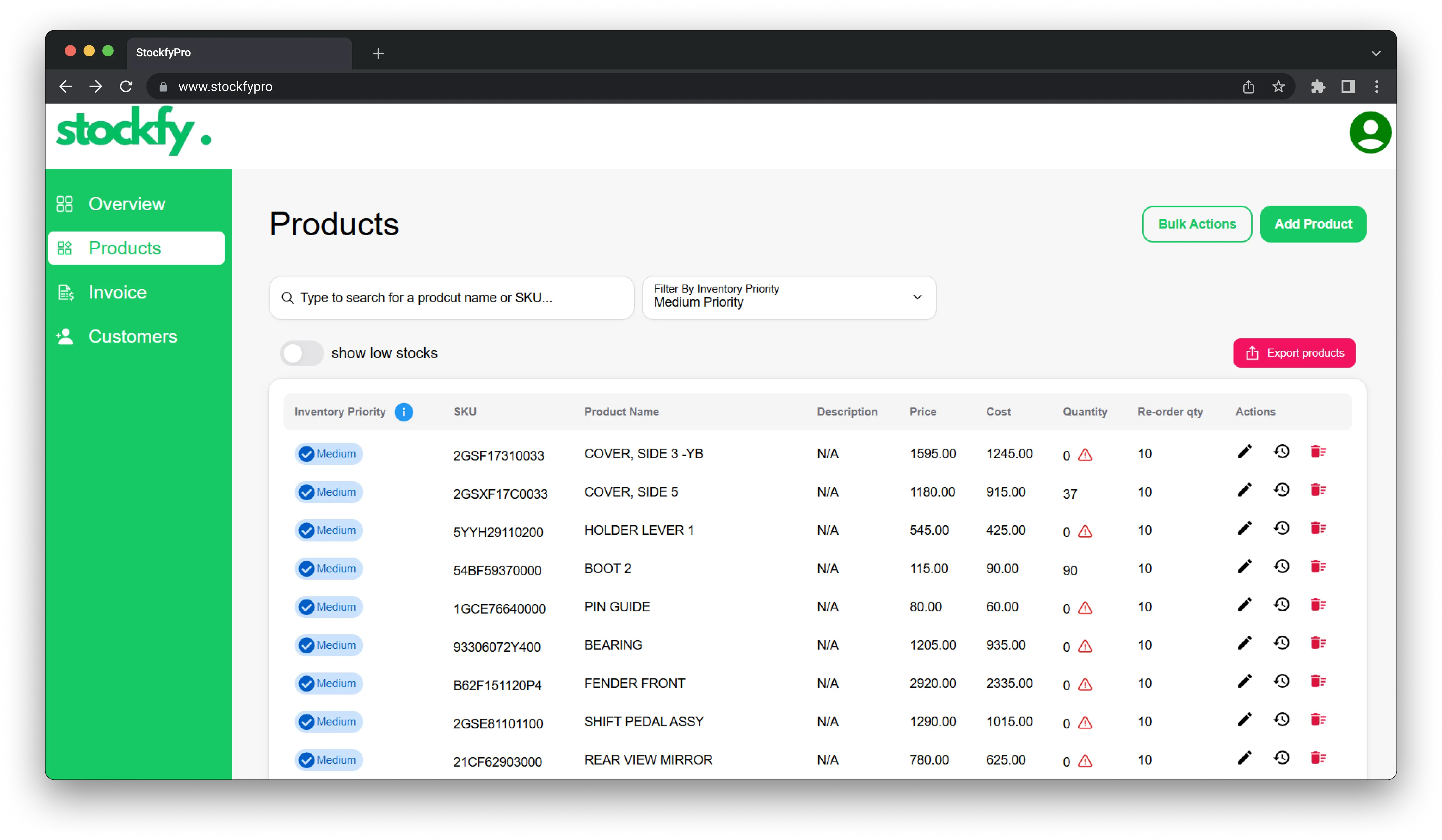 Stockfy gives you complete control over your stock. Track, manage, and optimize inventory with ease.